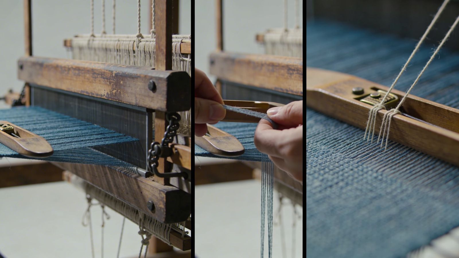 It's a simple yet sophisticated wooden machine designed to weave threads and transform them into a consistent material.